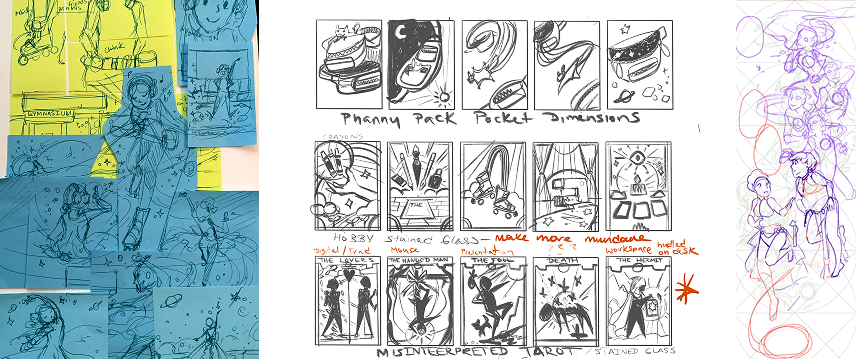 I start my process with lost of Thumbnails! Most Digital but sometimes traditionally with sticky notes and a pen. Ideating is such an important part of my process as it helps me to unleash all the ideas and possibilities without committing to one idea just yet.