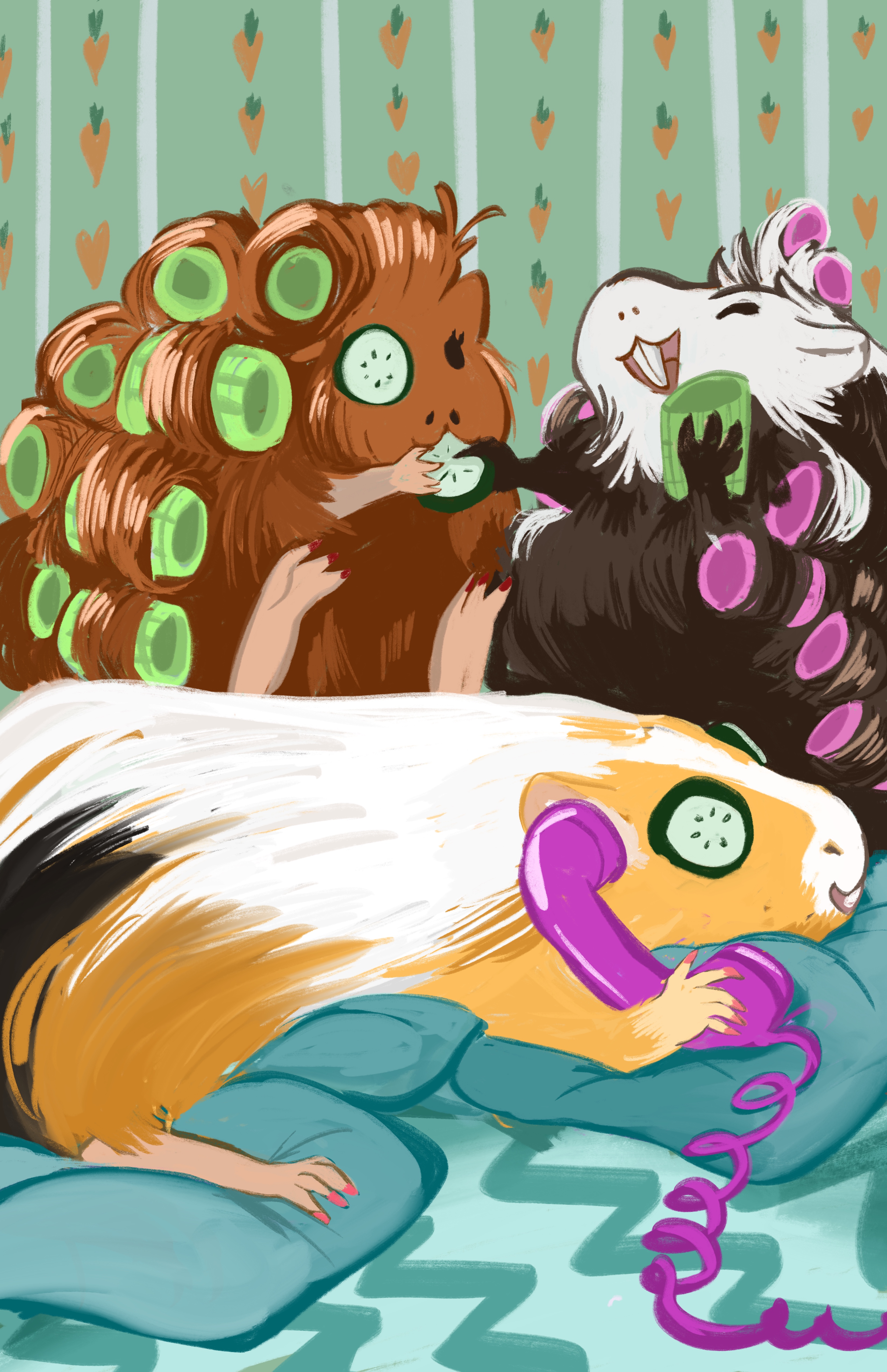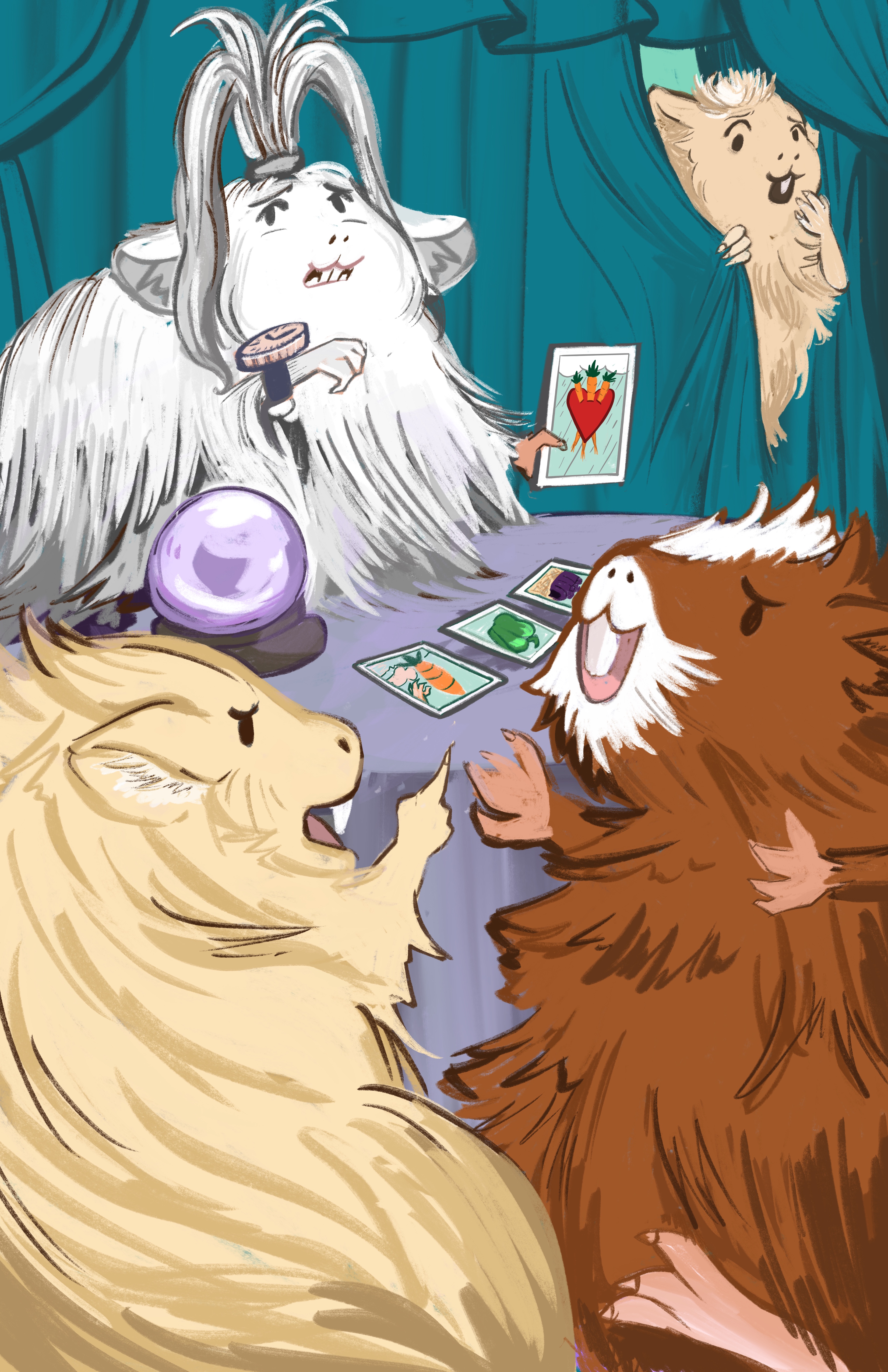 For the medium of my posters, I used the digital program procreate. I wanted to create imagery that would be similar to the mindset of a child who has imagined their pet Guinea pigs living like normal people.